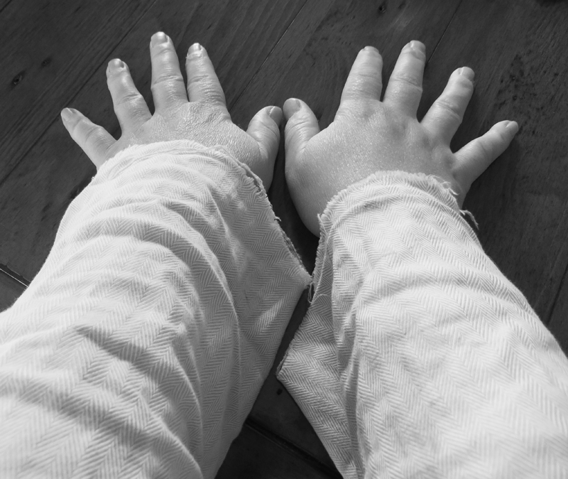 I’m definitely a messy pup with my hands. Although I love to work in a very tidy environment, I need to know that if I need to dry or wipe my hands, I can do so freely. I have found the perfect work smock to be my partner Ian’s decommissioned business shirts! Although I do have to cut the double cuffs as I seem to have rather short arms… 🙂