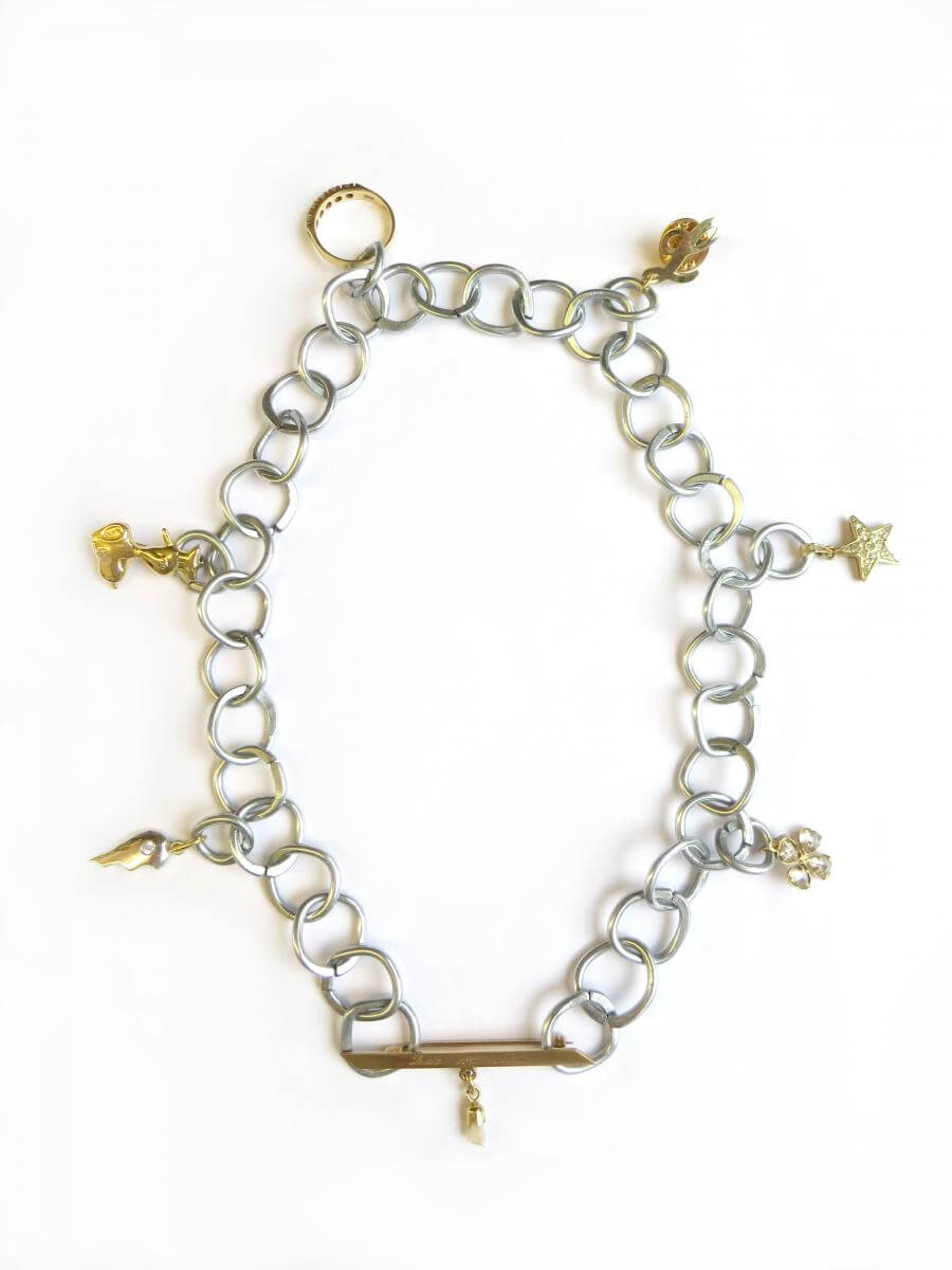 NECKPIECE (reclaimed steel, personal jewellery received or given as gifts as a child / young adult)