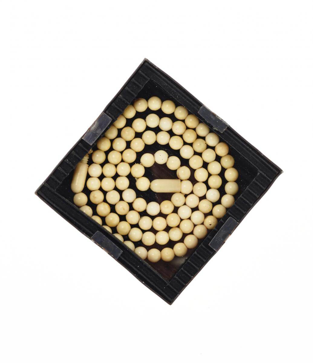 Ivory seemed to be the perfect material to embody an emotional burden that, like this necklace, was passed down through generations bearing with it stories of suffering, guilt and regret. Here, it is archived in its own museum case. Unable to be touched and to “touch”, it loses its functionality as a necklace to acquire instead that of a badge: a severed yet inextricable part of personal heritage.