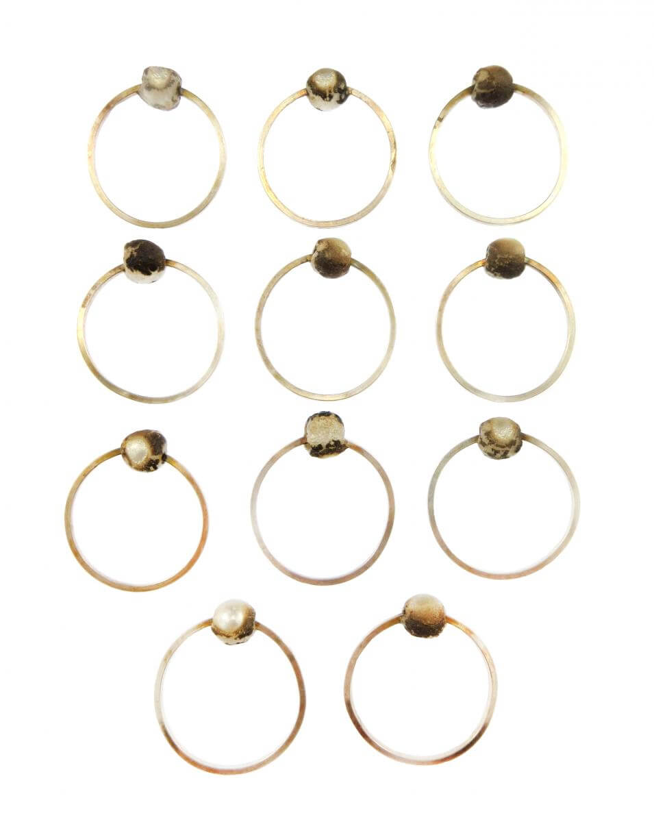 SERIES OF 31 RINGS (recycled silver, reclaimed faux pearls)